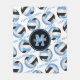 This cute volleyball themed fleece blanket features a mirrored pattern of volleyballs with light blue, black and white panels and the sporty font text "I love volleyball" in light blue that stretches between the angled rows of volleyballs - athlete name and monogram can be personalised on the large overlying circle pendant - background is customisable white - easily delete the "I love volleyball" text lines, if desired, or replace the monogram with the player's varsity letter or jersey number - by katz_d_zynes