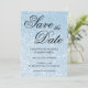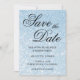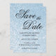 Light blue faux glitter photo with a bokeh blur for your wedding save the dates.