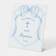Light Blue Bow Crest Baptism Welcome Pedestal Sign