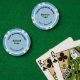 Poker chips that you can customise to put your business name, logo, city or town and state. You can use it during corporate events to advertise your business or to promote your brand name while entertaining your customers, clients or guests. Customisable poker chips that your can use to build brand name awareness while enjoying business parties. Design colours are dark blue texts on light blue background. Please check the appearance on front and back sides after uploading logo and typing texts. If the appearance is pleasing to you, you can place your order now. If you need to resize and move the logo and texts to fit on the poker chips, please change in the design tool. You can also change the font style, font colour and the inner background colour in the design tool.