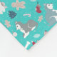 Nice light blue Christmas Blanket with cute husky dogs and celebration elements pattern.