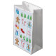 A gift bag built with a pattern with some Christmas symbols on light blue rectangles. You can edit and put your own words. Merry Christmas!