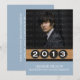 Sleek and refined Classy Keys Graduation Invitation in light blue featuring a sharp woodgrain look (digital art) border with a set of four typewriter keys where each digit of the graduate year may be customised. This modern invitation is easy to customise with a photo of the grad and graduation party details. Click "Customise It" to find more personalisation options.