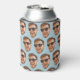Funny custom face cut-out can cooler with a light blue background, personalised with a photo for any party. To make the face cut-out, click the button to edit the design and the remove background option, or download any mobile or computer app, create the cut-out, and upload a transparent png file.