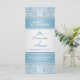 Light blue damask pattern on a silver gradient background Wedding Menu Rack card. The matching items are shown below:
