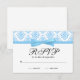 An formal RSVP response card featuring a light blue damask pattern and bow illustration. Easily personalise with your information.
