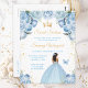 This elegant and glamourous sweet sixteen birthday invitation features a beautiful princess with dark skin in a light blue ball gown. The text combines handwritten script and modern sans serif fonts for a classy and sophisticated look. The floral arrangements, butterfly and gold confetti create the perfect blend of rustic and chic.