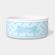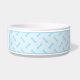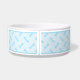 Cute design of very light blue colour dog bones pattern. There is also a bigger blue dog bone shape in the middle with a personalizable text area for the name of the pet in a white script font.