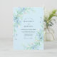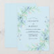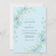This design features a soft wash of light blue as a backdrop for delicate watercolor greenery and floral sprays. The ethereal composition showcases graceful eucalyptus leaves and airy botanical elements in shades of sage and azure. Perfect for a seasonal event, the aesthetic evokes a sense of romance and tranquillity with its painterly textures and cool-toned palette.