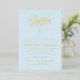 Elegant calligraphy "baptism" on custom colour background. Calligraphy and Cross element can be moved to suit your text, click "customise it".  Choose from gold foil, rose gold or silver. Delete photo template from the back if you'd like to choose a blank colour or add your own graphic.