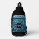 Blue faux glitter sparkles Custom Monogram Sling Bag. Cool fashion accessory bag for her. Beautiful girly glamourous blue shiny glitters sparkles design. Create a unique and personalised bag with a custom touch! Modern monogram with your initial and your name for that extra personal flair. We use Photo of sparkles, not real glitter!