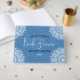 Light-blue faux linen texture background with white ornate mandala elements. Modern hand-written typography-Bridal Showers- in white with customisable text in navy-blue.
