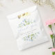 Elegant bridal shower favour gift bags with "thank you" in a frame of light blue watercolor flowers. Personalise with the bride-to-be's name and shower date in the centre in grey.