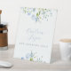 A beautiful light blue watercolor floral table top sign for you to customise for your even - perfect for a wedding or bridal shower.
