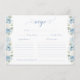 Light Blue Floral Spring Bridal Shower Recipe Card