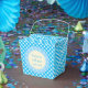 Cute light blue gingham custom favour box, perfect for garden parties and picnics.