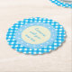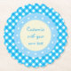 Light Blue Gingham Fancy Custom Text Paper Coaster