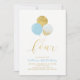 Light Blue & Gold Balloons Four 4th Birthday Party Invitation