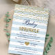 Light Blue Gold Stripe Confetti Baby Boy Sprinkle Invitation