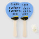 Creative graduation party and grad commencement cheer gear featuring Class of 2026, black cap with gold tassel on light-blue background.