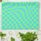 Light Blue & Green Warped Chequerboard Pattern Tea Towel