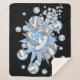 This cute girl's volleyball themed Sherpa fleece blanket features an "explosion" of light blue, grey and white volleyballs in varying sizes and light blue and grey star shapes and white polka dots on the blue star, all on a customisable black background - the volleyballs' blue and grey panels are blended with a girly, floral kaleidoscopic pattern - customise with player's name and jersey number - katz_d_zynes