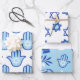 Light Blue Hamsa Star of David Pattern Hanukkah Wrapping Paper Sheets