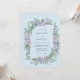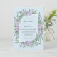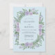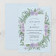This design features a lush watercolor arrangement of lavender roses and vibrant green ferns set against a soft powder blue. The botanical elements create a serene and romantic atmosphere, perfect for a springtime forest event. The colour palette combines cool pastels with rich leafy greens for a graceful aesthetic.