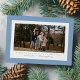 This simple horizontal Christmas card features one photo on the front surrounded by a light dusty blue herringbone frame. The festive fabric look gives it a trendy grandmillenial vibe and the type allows you to create your own personalised message. The back has a matching tweed pattern and room for a second photo. This holiday card design is perfectly on trend and simple and is great as a family Christmas card, newlywed Christmas card and even a Hanukkah card. Also available in different colours and styles and as a digital Christmas card download.