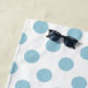 This beach towel features large light blue polka dots on white.