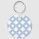 A stylish, geometric pattern featuring a lattice of light blue. The baby blue cross-hatching separates large and small white diamonds.