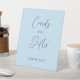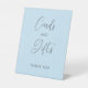Cards and gifts wedding sign with a light blue background. Show guests where to put their cards and gifts at your ceremony or reception with this signage decor. This pedestal sign fits perfectly on a table and stands on its own.