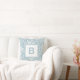 Light Blue Modern Botanical Pattern Monogram Cushion
