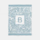 Light Blue Modern Botanical Pattern Monogram Fleece Blanket