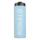 Keep hot beverages hot and cold beverages cold with this thermal, insulated thermal tumbler that is a trendy, light blue colour along with name printed in white, modern  typography. Edit your thermal tumbler and replace name with desired name. Perfect for a birthday gift, wedding groomsman gift, etc.