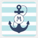 Light Blue Nautical Anchor Monogram Square Sticker