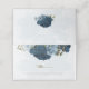 Beautiful romantic wedding place card featuring navy blue and light dusty blue flowers and some pretty leaves .