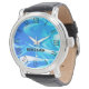 Light Blue Ocean Waves Cool Marbled Custom Name Watch