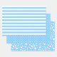 Three patterns in light sky blue and white: basic stripes, polka dots and random spots.