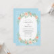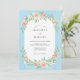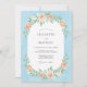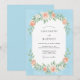 This design features a soft colour palette of light blue, peach, and leafy greens, creating a serene and romantic spring atmosphere. Delicate watercolor roses in shades of peach and coral are nestled among lush greenery and small white blossoms. The artistic arrangement offers a timeless and elegant aesthetic for an outdoor or classic event.
