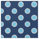 Stylish geometric cotton twill fabric features light blue polka dots outlined in white on a dark blue background. The light and dark blue pattern is perfect for DIY accessory and home decor sewing projects.