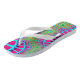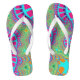 These colourful fractal flip flops has bright and vibrant colours such as light blue and pink. These colourful flip flops are great for the beach, spring and summer weather or the pool. You can change the size, style, sole colour and strap colour of the flip flops.