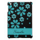 Light Blue Retro Flowers On Black iPad Mini Case