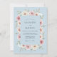 This ethereal design features a palette of light blue, blush pink, and cream. Hand-painted watercolor roses and soft green foliage create a romantic atmosphere for a spring or summer event. The delicate floral arrangement surrounds the centre, offering a timeless and elegant aesthetic for any couple.