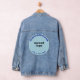 Women's denim jacket with your business name, logo, city or town and state. Jacket that you can include in your promotional products, giveaway items or gifts to your customers or clients to advertise your business or to promote your brand name. Jacket with your business brand that you can use to build brand name awareness. Jacket as uniform also of your staff. Design colours are dark blue texts on light blue round shape background. Please check the appearance after uploading logo and typing texts on the size that you chose. If the appearance is pleasing to you, you can place your order now. If you need to resize and move the logo and texts, please change in the design tool. You can also change the font style, font colour and colour of the round shape background in the design tool.