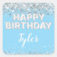 Light blue and silver birthday party favour stickers for a fun party with a modern classic look with glitter and foil balloons on stickers to personalise your party favours.