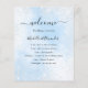 A baby blue background decorated with faux silver glitter, sparkles. Personalise and add your names and wedding details. Black coloured letters. If you have more text it's possible to reduce the line space. You can also add text on the back.