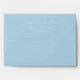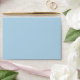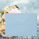 Light blue colour mailing envelope for your wedding invitations and features your name and address printed on back flap in a modern script style. Personalise your envelope by editing and replacing name and address with your own. Edit further to change font style or colour. Select your envelope size that fits your invitation.
