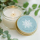 Add a personalised touch to your envelopes, wedding favours, and more with these Elegant Snowflake in light blue wedding stickers. The design features a white line art illustration snowflake over soft blue background. Your names and wedding date are displayed in white lettering.