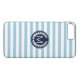 Light Blue Stripe with Navy Laurel Wreath Monogram Case-Mate iPhone Case
